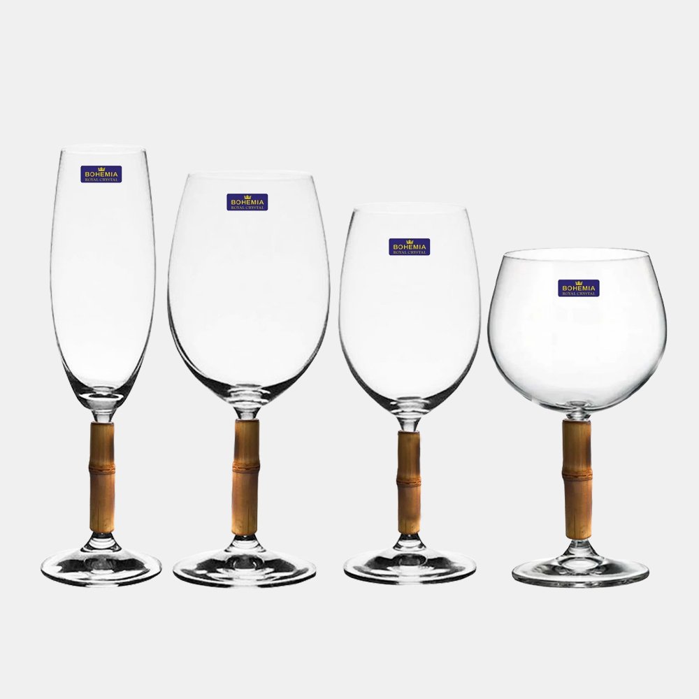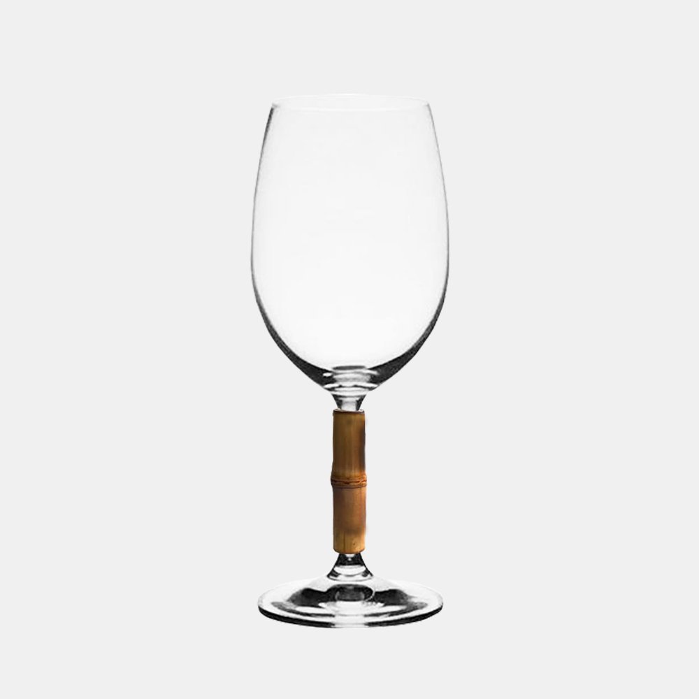 Taça para vinho branco de cristal reforçada com titânio com haste de bambu natural